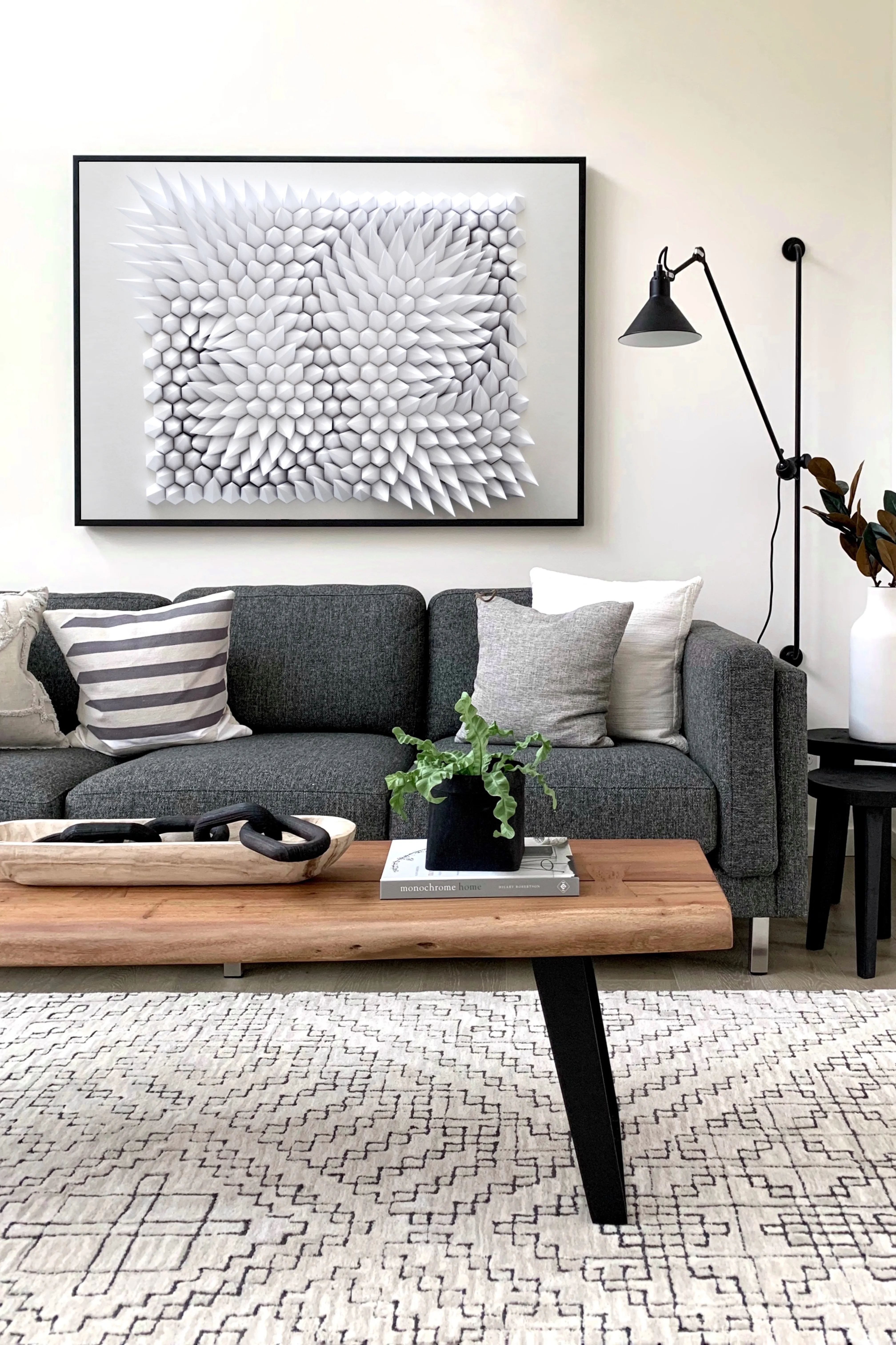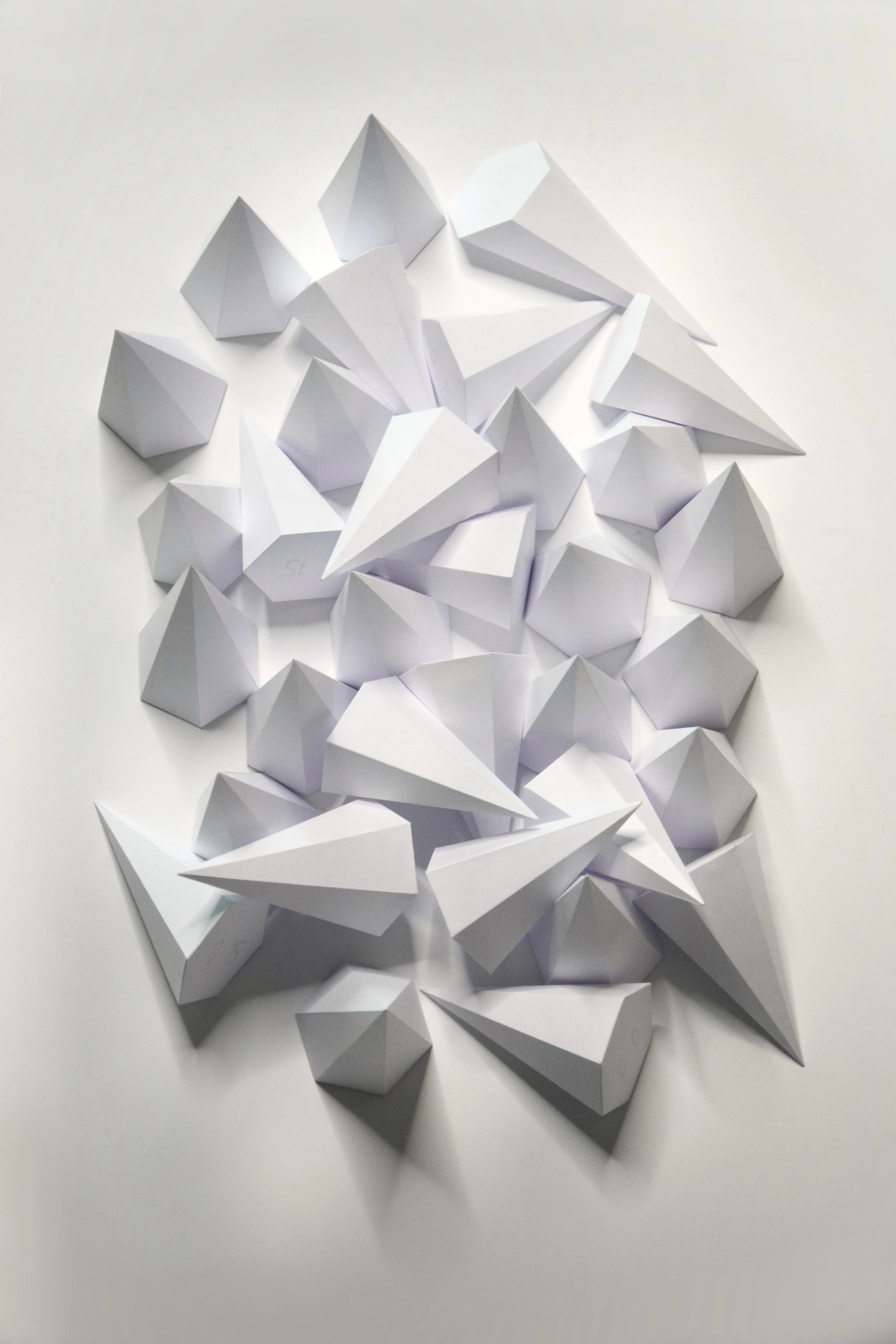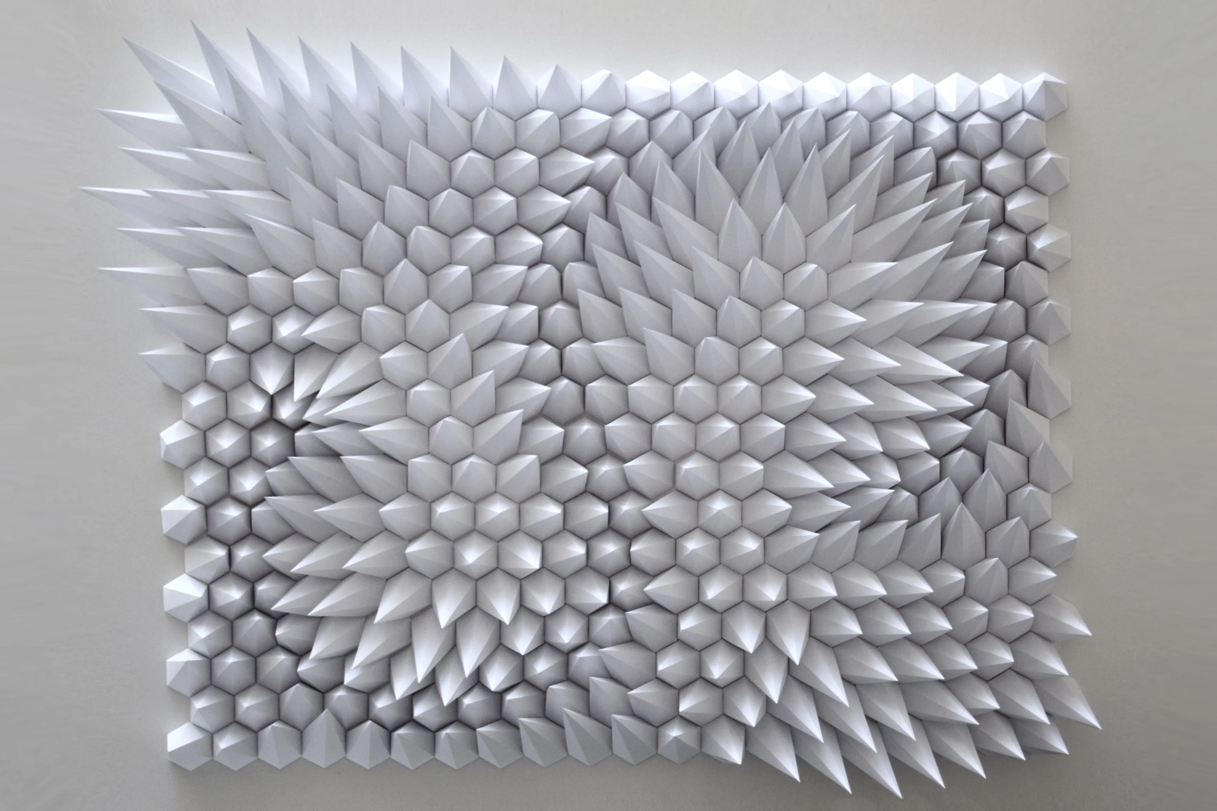 Die Papier-Skulptur wurde aus zahlreichen, unterschiedlich geneigten Sechseckpyramiden konstruiert. Diese sind so angeordnet, dass sie eine wellenartige Bewegung nachbilden, welche durch die gesamte Komposition fließt und den Eindruck einer gefrorenen Textur vermittelt.