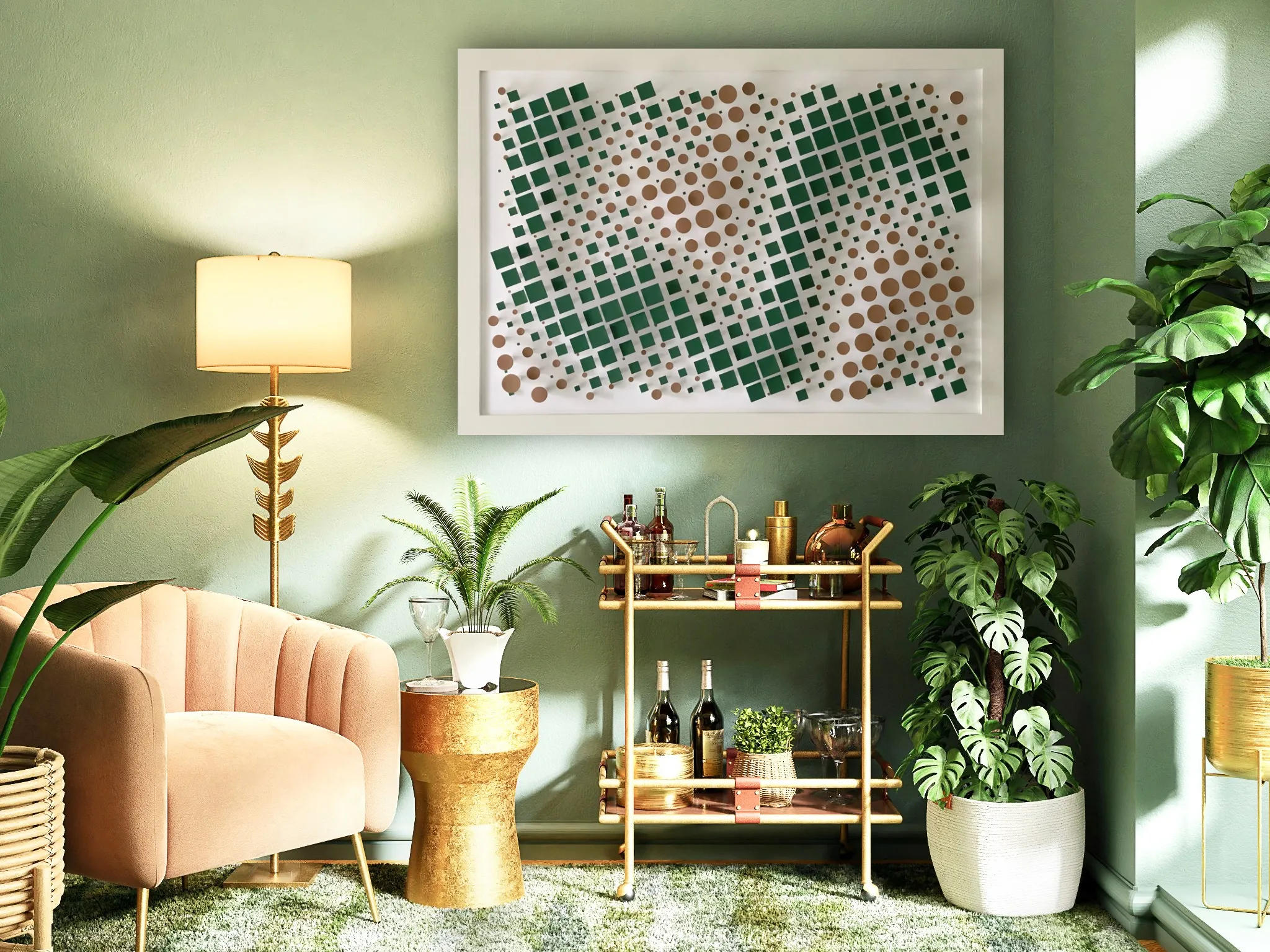 Their arrangement is reminiscent of a graphic equalizer, translating the invisible vibrations and tones of nature into a visual form. Through the pixel-like fragmentation, a modern, abstracted image of floral forms and acoustic perceptions emerges.